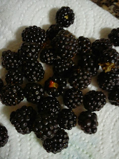 Numa rua antes da nossa apanhei estas amoras da foto. Gosto muito, quando era criança apanhava muitas e bem maiores que estas. Chegava a casa, passava-as por àgua e comia com açúcar à colherada :-)